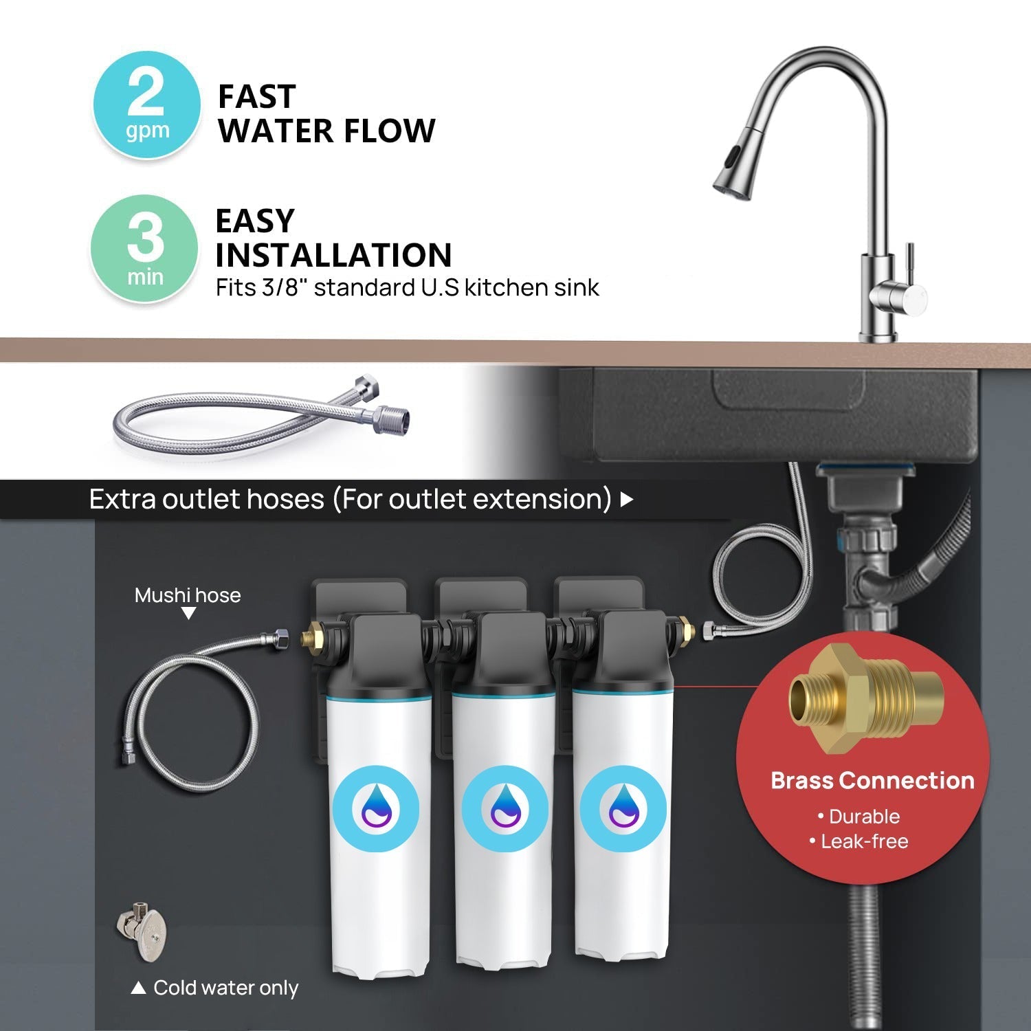 Easy to install and use, the OPTI UnderSink System works by simply screwing the ends together under your sink.