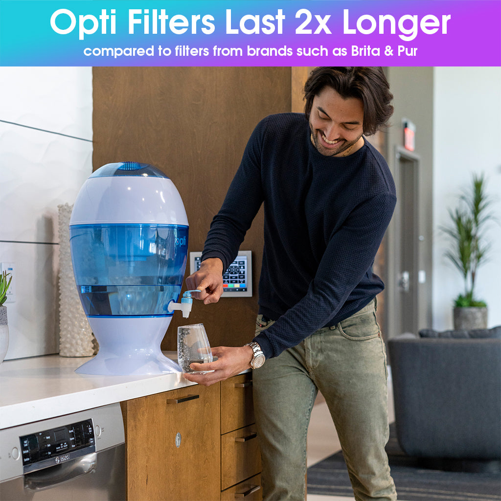 I love Opti water filter. It gives me peace of mind knowing I will have clean, filtered water all the time. It also saves my back from lifting the heavy bottled water while saving the environment from plastic bottles.
