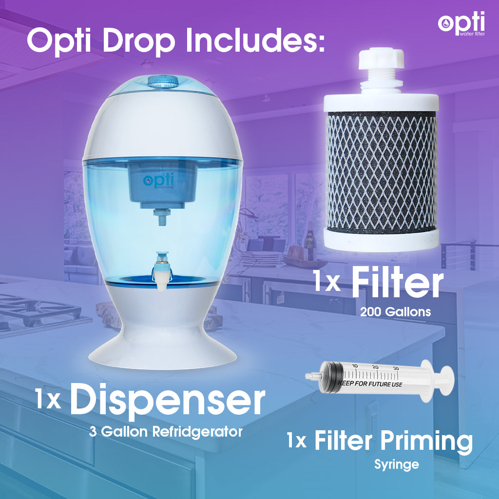 Opti Drop | Alkaline Countertop Water Dispenser (3 Gallon Capacity) + 1 Filter (200 Gal)