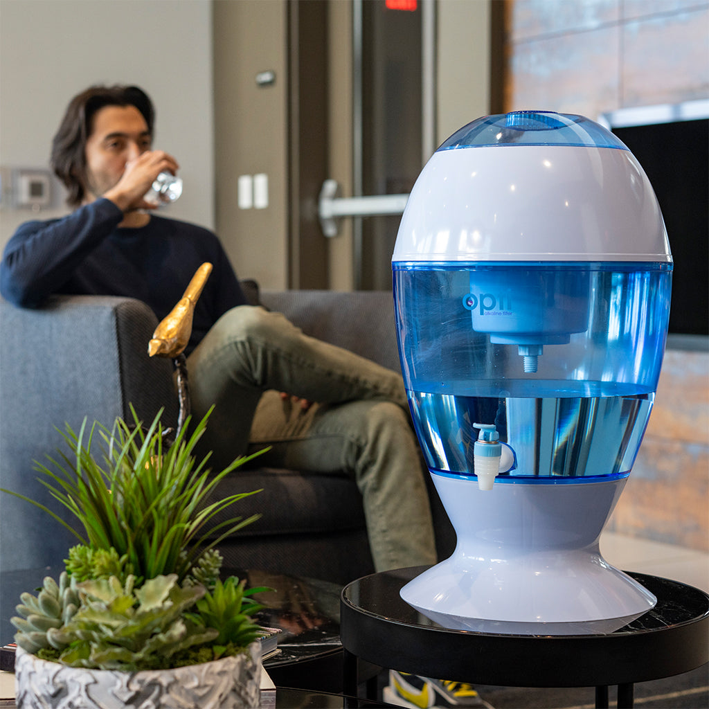 The OPTI Drop 3-Gallon Countertop Alkaline Water Unit utilizes proven technology to filter out 99.99% of contaminants, including Lead, Micro-Plastics, and more. Our filters not only remove harmful contaminants but also eliminate bad tastes and odors. Designed to retain beneficial trace minerals, the OPTI Drop naturally enhances the water’s alkalinity up to a pH-9.0. Enjoy fresh, clean, alkaline water at a fraction of the price. Simply fill the top reservoir with water, and gravity will filter it through the Ionic Filter.